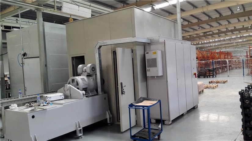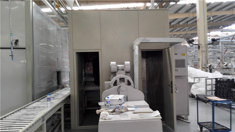 工程難點:本項目中隔音房要有線體穿過,并且保證線體上工件自動進入隔音房。我公司根據(jù)甲方的要求在隔音房的合適位置設置自動升降隔音門,實現(xiàn)與甲方線體的統(tǒng)一工作。