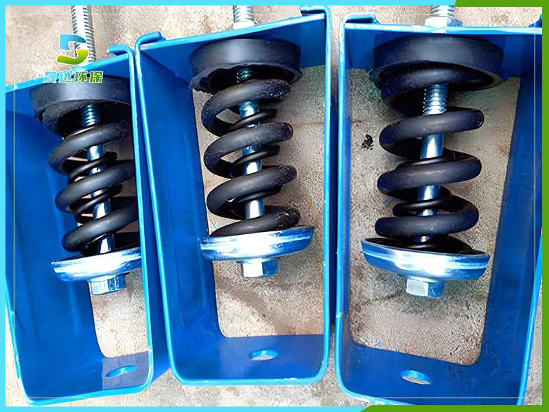 吊架減振器,采用特制的阻尼材料與特制的彈簧相結合,以金屬彈簧為主,具有自振頻率低,阻尼適當、隔振降噪效果明顯的功能。在保證隔離中低頻噪聲時的良好效果同時避免高頻失效現象。